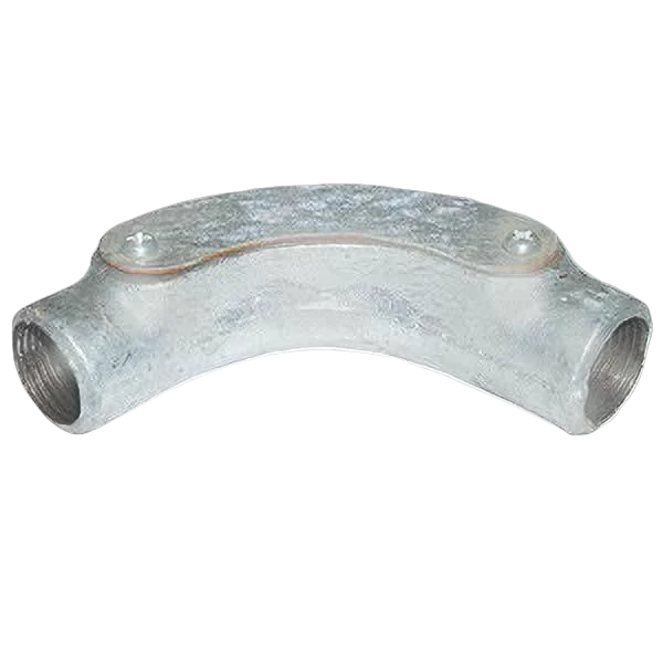 The CF20IBG Galvanised Steel Inspection Bend is a 20mm conduit accessory designed to create a smooth 90° turn while allowing easy access for cable inspection and maintenance. Manufactured in compliance with BS EN 50086 standards, it's ideal for professional conduit installations in industrial and commercial settings.