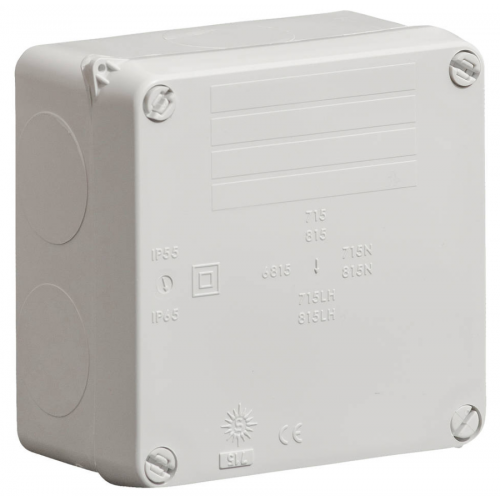 The Wiska Box WIB1 is a robust, smooth-sided enclosure designed for terminal connections. Made from high-quality thermoplastic, this grey junction box offers exceptional durability and protection. With an IP65 rating, it ensures resistance against dust and water, making it suitable for both indoor and outdoor installations. The box features a surface mounting design for easy installation and has dimensions of 60 mm in height, and 110 mm in width and length. Ideal for various applications, the Wiska Box WIB1 provides reliable performance and protection for your electrical connections.