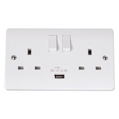 Click CMA770 Socket 2 Gang Switched and USB 13A White