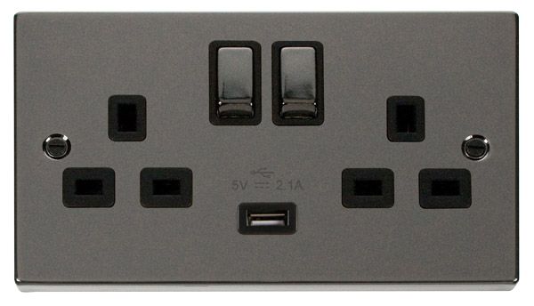 Click VPBN570BK Socket 2 Gang Switched and USB 13A