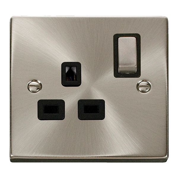 Click VPSC1535BK Socket 1 Gang Double Pole 13A Satin Chrome/Black