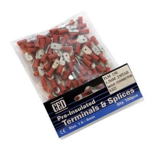 0.5-1.5mm .250mm Tab X .08mm Height Male - Red | Pre Insulated Terminals & Splices