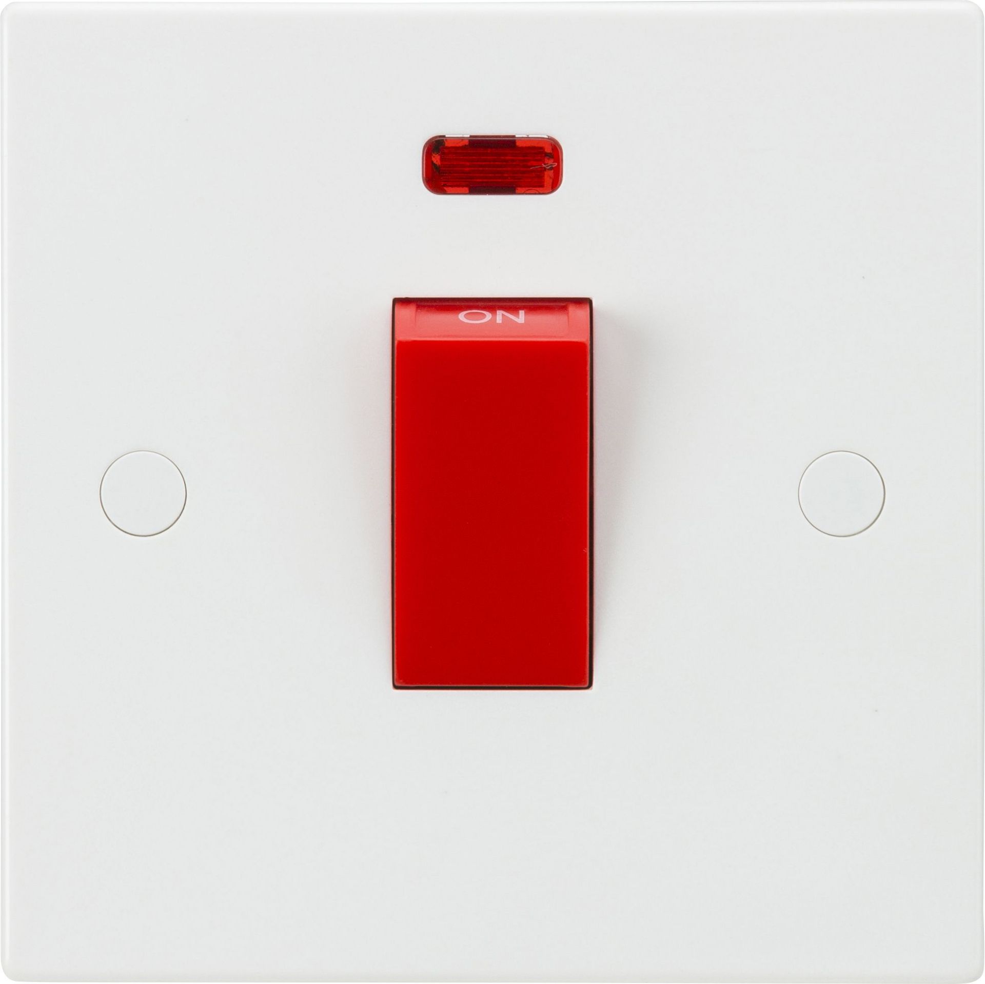 PlusSwitch 1 Gang 45A Double Pole Cooker Switch with Neon - White