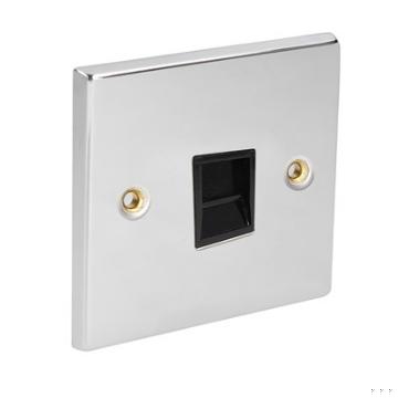 CED Cat 5 1 Gang Socket Outlet Chrome Black Inserts