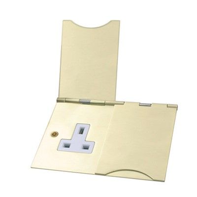 CED 13amp Twin Floor Socket Satin Brass To Bs1363 Pt2