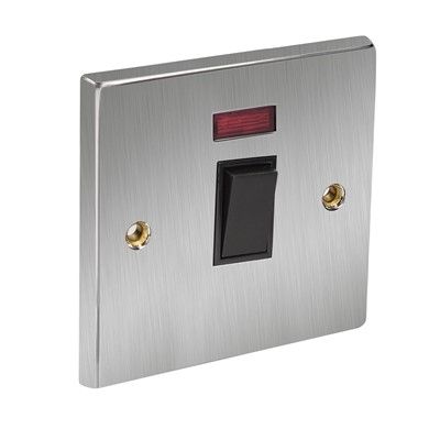CED Switch 20amp Double Pole with Neon Satin Chrome Black Inserts