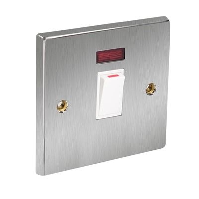 CED Switch 20amp Double Pole with Neon Satin Chrome White Inserts