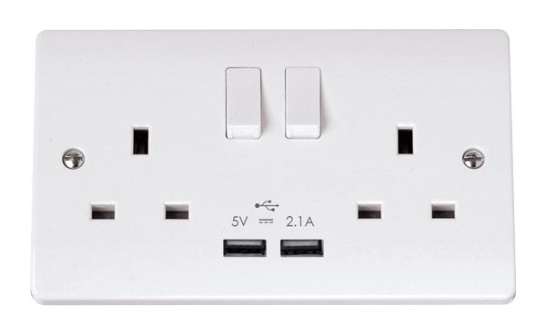 Click CCA780 Socket 2 Gang Switched and USB 13A White