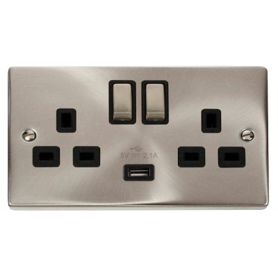 Description: Socket, Ingot 2G Switched c/w USB Outlet, Black Insert Victorian