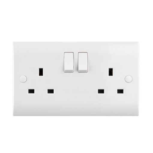PlusSwitch 2 Gang Single Pole Switched Socket 13A - White Curved