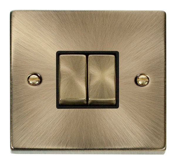 Description: Plate Switch, 2 Gang 2 Way, Black Insert Victorian