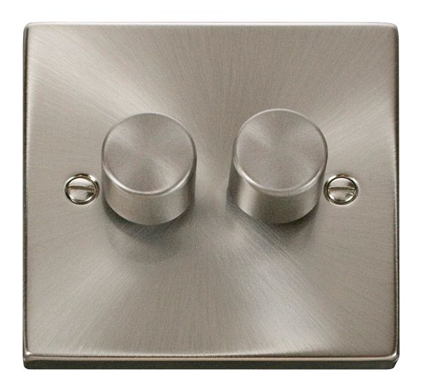 Description: Dimmer Switch, 2 Gang 2 Way, Black & White Gasket Victorian