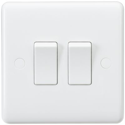 PlusSwitch 2 Gang Single Pole Switched Socket 13A - White Curved