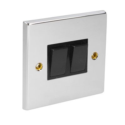 CED Switch 10amp 2 Gang 2 Way Chrome Black Inserts