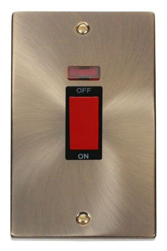 Description: Cooker Control Switch, 2 Gang c/w Neon, Black Insert Victorian
