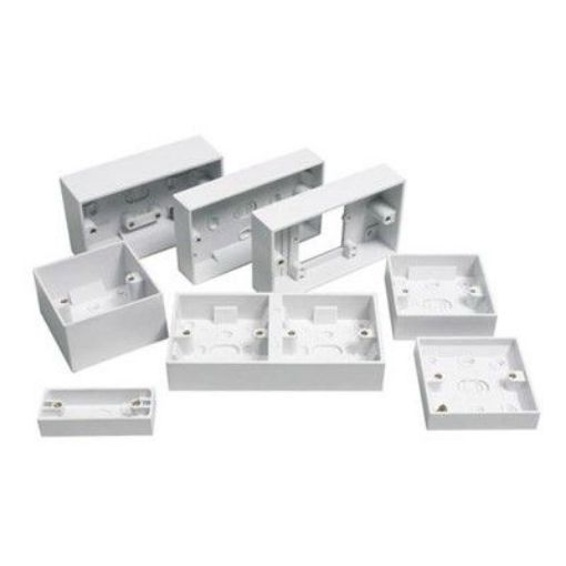 Axiom Accessory Boxes: Axiom wiring accessories include a comprehensive range of Junction boxes, Surface Pattress boxes and Dry Lining back boxes as well as SP and DP Connector blocks - all with the necessary BS standard approvals. Junction boxes come in white or black, Pattress boxes are available in 1 or 2 gang and come in 4 depths from 16mm to 45mm. whilst the Dry lining box range has 1, 2 and 1+2 gang sizes plus a round option in depths up to 45mm.