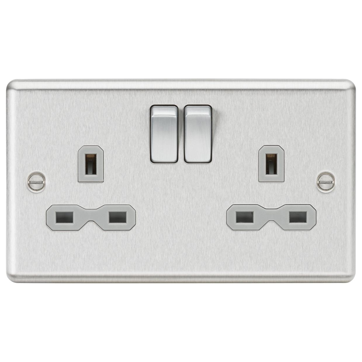 Knightsbridge Round Edge 13A 2G Double Pole Switched Socket with Twin Earths - Brushed Chrome with Grey Insert