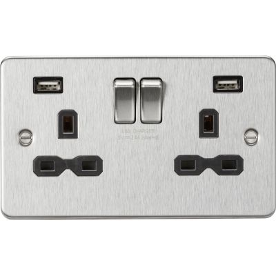 This charger socket is a great finishing touch to any modern home. Flat Plate low profile metal design with matching metal rocker. Built in Dual USB Charger