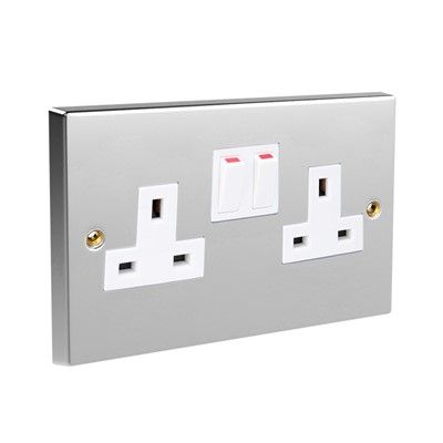 CED Switched Socket Twin 13amp Chrome White Inserts