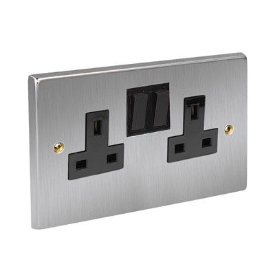 CED Switched Socket Twin 13amp Satin Chrome Black Inserts