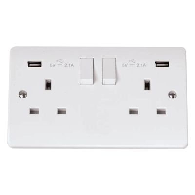 Click CMA780 Socket 2 Gang Switched and USB 13A White