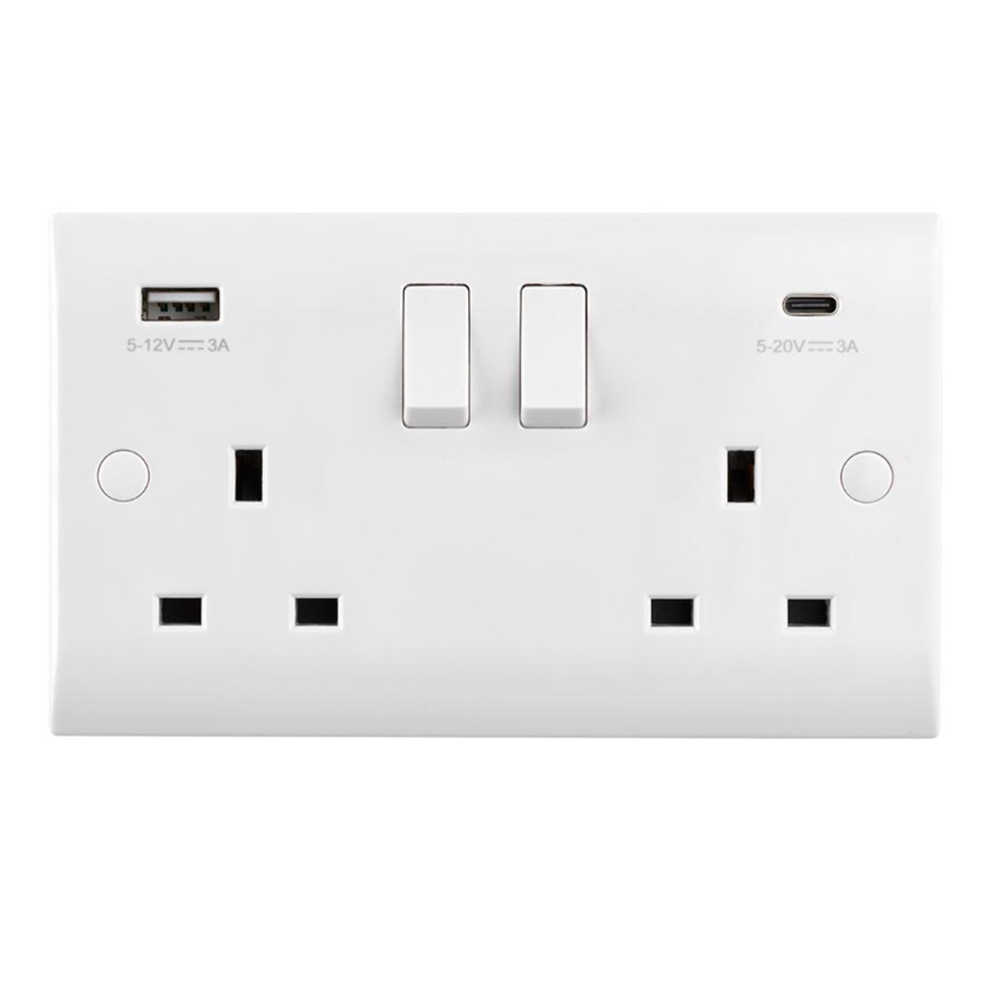PlusSwitch 2 Gang Single Pole Switched Socket 13A - White with 45W USB A+C Ports