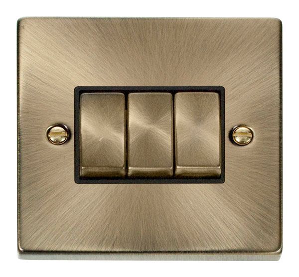 Description: Plate Switch, 3 Gang 2 Way, Black Insert Victorian
