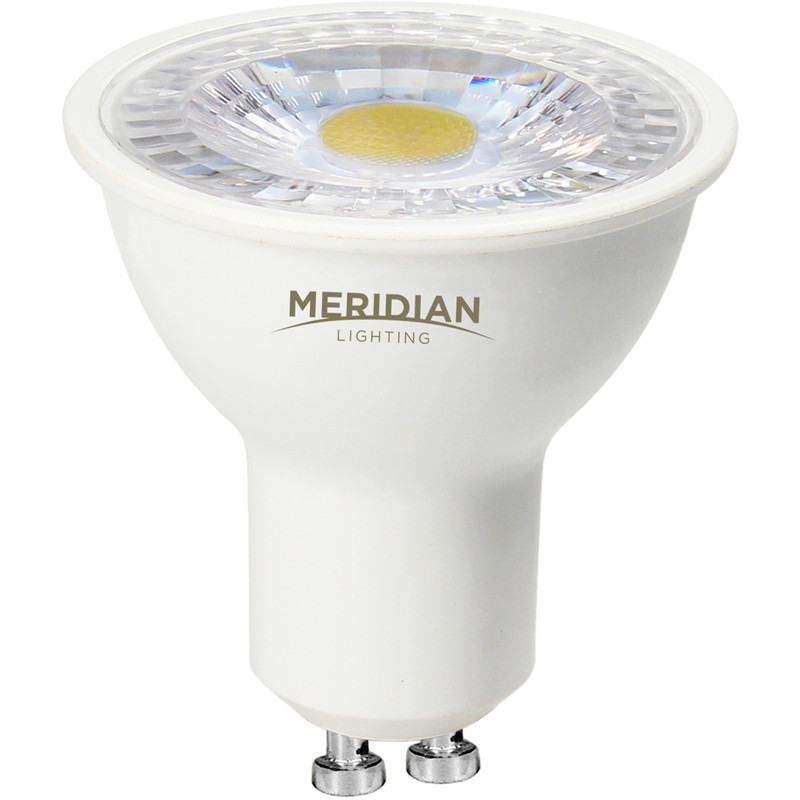 Select this high-performance, adjustable brightness LED GU10 bulb from Meridian Lighting for ample illumination. It is designed to mirror the form and look of a traditional halogen bulb, making it ideal for lighting up areas like kitchens, bathrooms, or home offices where adjustable light intensity is desired to achieve various atmospheres.