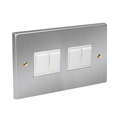 CED Switch 10amp 4 Gang 2 Way Satin Chrome White Inserts