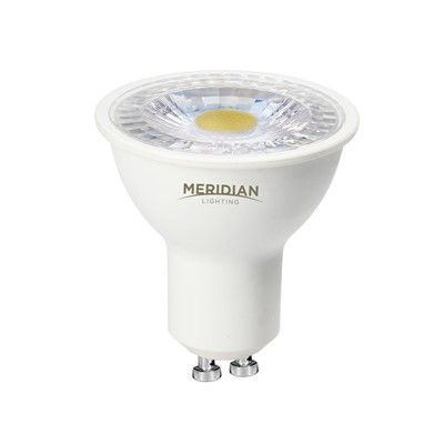 Meridian Full Face and Glass GU10 Lamps have the benefit of full face illumination and are suitable for the vast majority of non-dedicated downlighter fittings. The range consists of SMD plastic full face lamps in standard and dimmable variants, plus glass and ceramic bodied lamps. Each type is offered in cool (6500k) or warm (3000k) white, with all lamps rated at 5W " the most popular wattage. Beam angle for glass and plastic options is 38*, whilst the new ceramic GU10s give a wider spread at 110.