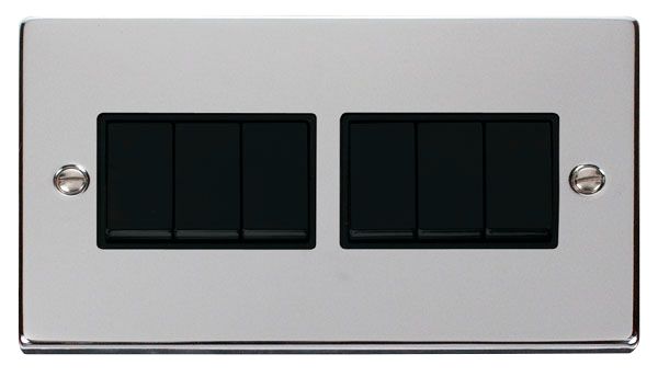 Description: Plate Switch, 6 Gang 2 Way, Black Insert Victorian