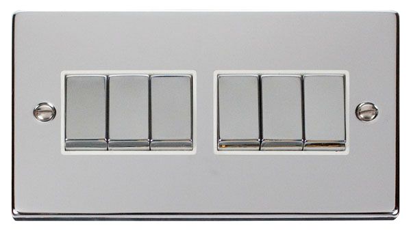 Description: Plate Switch, 6 Gang 2 Way, White Insert Victorian
