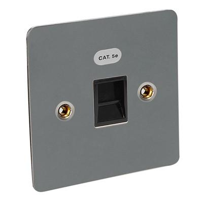 Axiom FRJ45/1/BN Socket Flat RJ45 Cat5e 1 Gang Black Insert Black Nickel | FRJ45/1BN