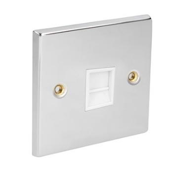 CED Cat 5 1 Gang Socket Outlet Chrome White Inserts