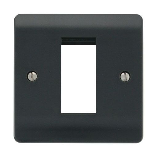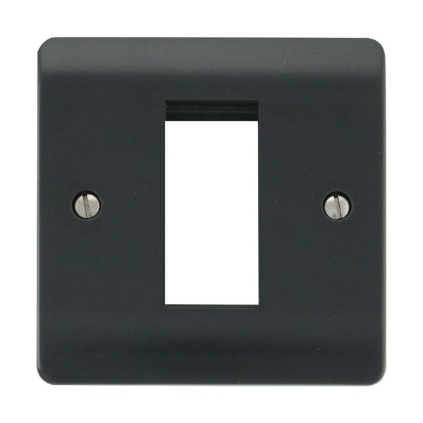 ['Integrated yoke (no yoke required)', 'Utilises New Media' modules', 'Moulded smooth profile anthracite grey plate', 'Antiviral & Antibacterial Certified']