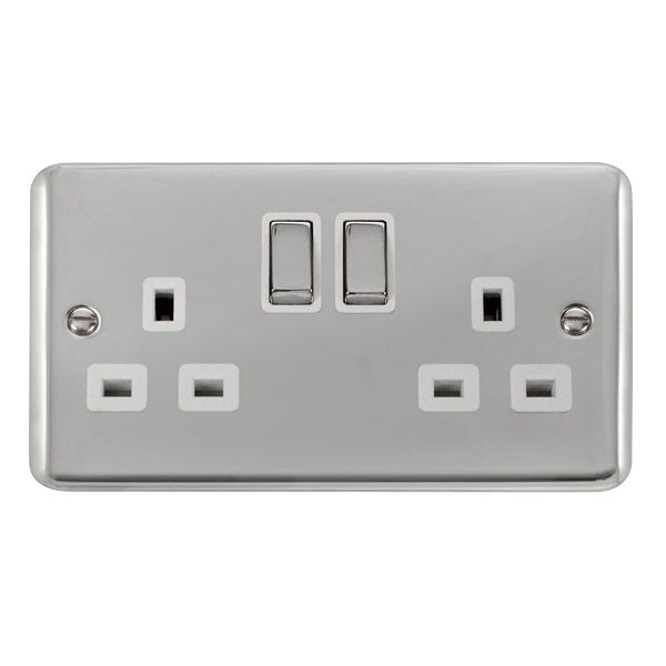 Click DPCH536WH Socket Double Pole 2 Gang Switched 13A Polished Chrome