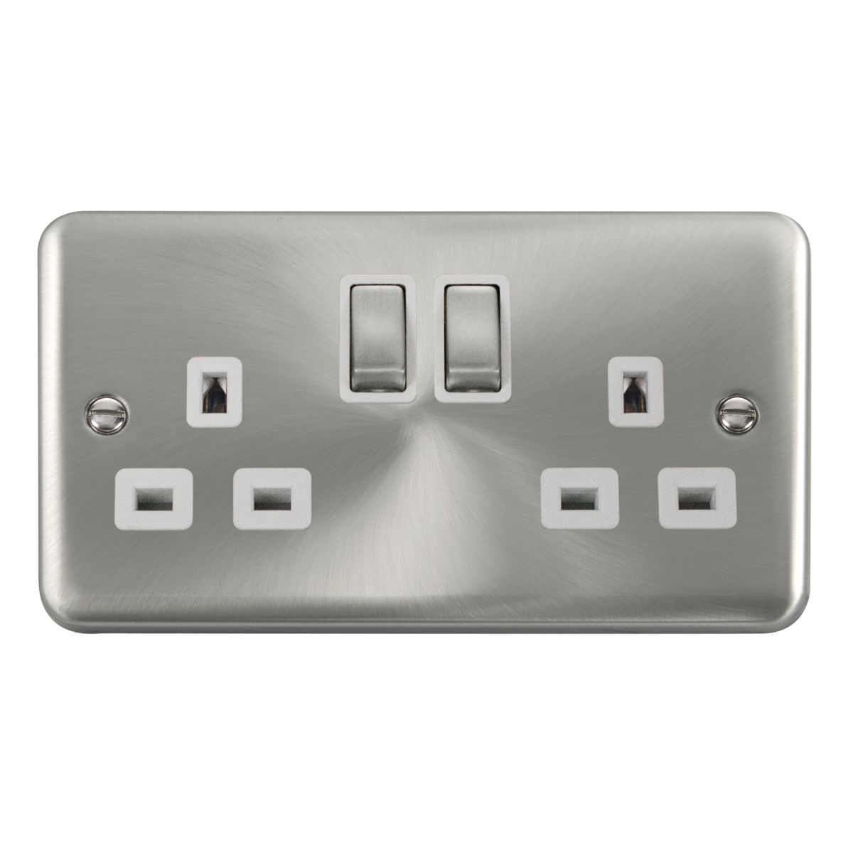 Click DPSC1536WH Socket 2 Gang Double Pole 13A Satin Chrome White