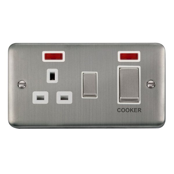 Description: Cooker Control Unit, Ingot 2 Gang DP c/w 13A DP Swd Skt&, Neons White Insert