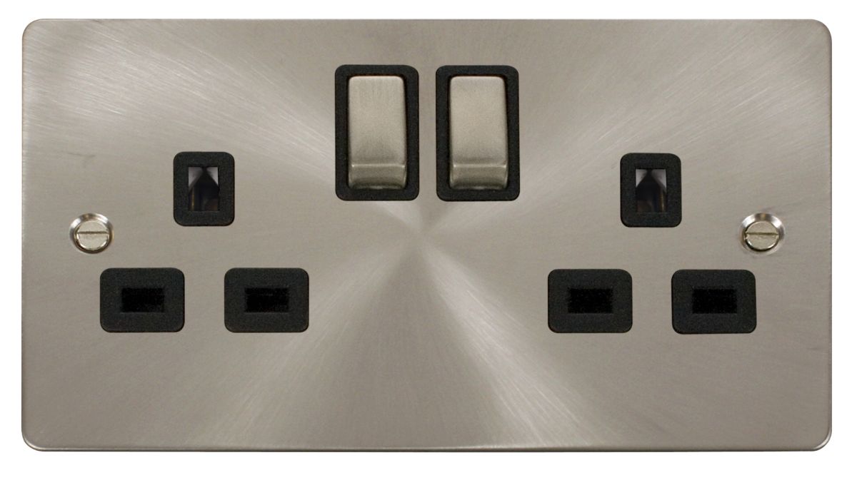 Click FPBS1536BK Socket 2 Gang Double Pole 13A BS/Black
