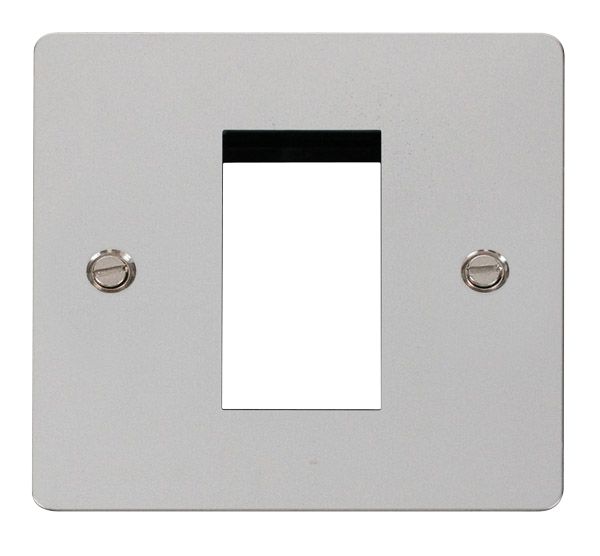 ['Integrated yoke (no yoke required)', 'Utilises New Media' modules', 'Decorative flat plate design', 'Polished chrome plate']