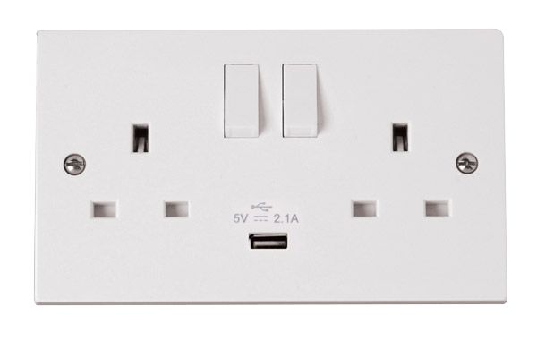 Click PRW770 Socket 2 Gang Switched and USB 13A White