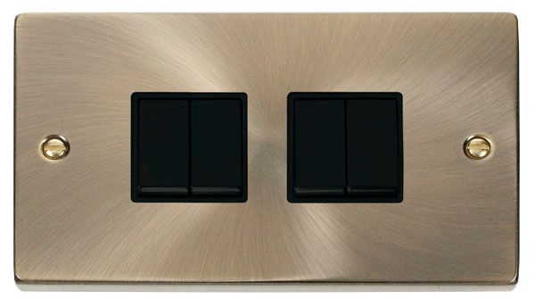 Description: Plate Switch, 4 Gang 2 Way, Black Insert Victorian