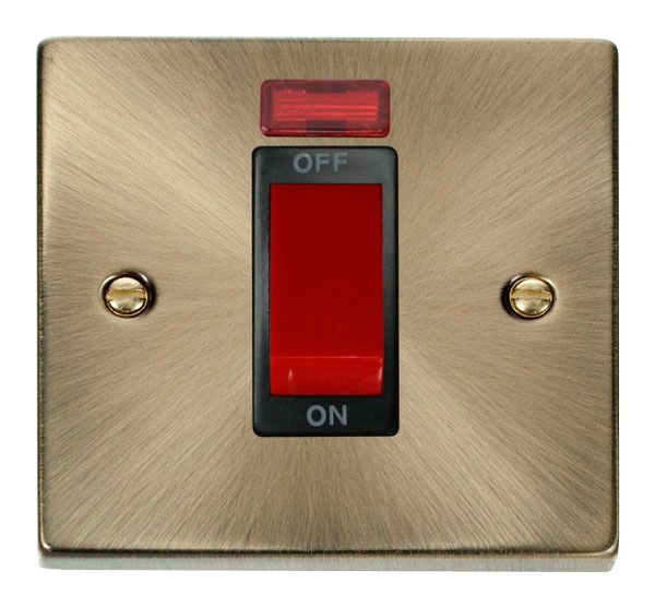 Description: Cooker Control Switch, 1 Gang c/w Neon, Black Insert Victorian