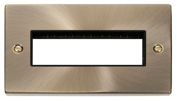 Description: Frontplate, 2 Gang 6 Aperture In Line, Black Insert Victorian