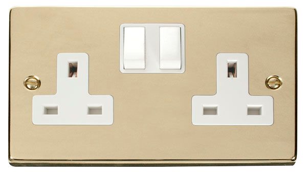 Description: Socket, 2 Gang DP Switched, White Insert Victorian