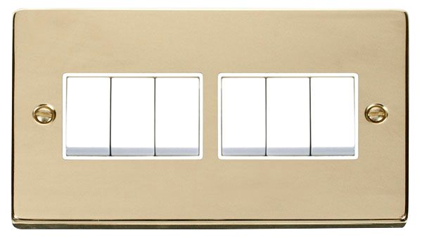 Description: Plate Switch, 6 Gang 2 Way, White Insert Victorian
