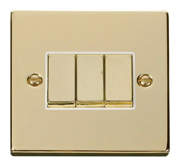 Description: Plate Switch, 3 Gang 2 Way, White Insert Victorian