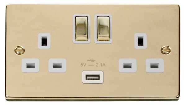 Description: Socket, Ingot 2G Switched c/w USB Outlet, White Insert Victorian