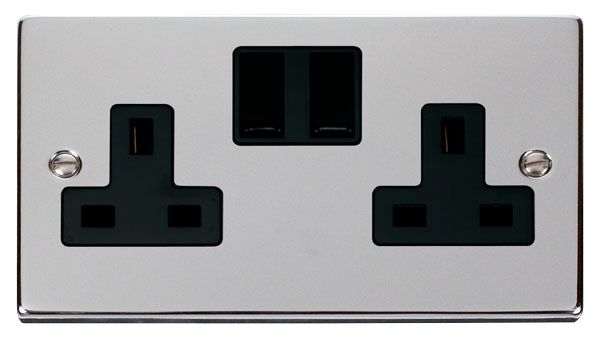 Click VPCH036BK Socket 2 Gang Switched 13A Polished Chrome