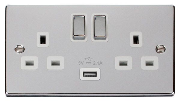 Click VPCH570WH Socket 2 Gang Switched and USB 13A
